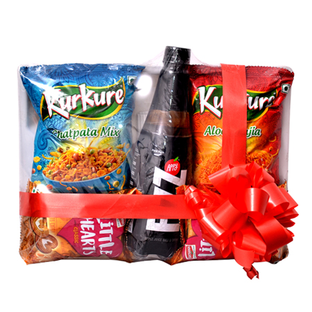 ONE KURKURE CHATPATA MIX NAMKIN 35/-,ONE ALLOO BHUJIA 35/-, ONE APPY FIZZ 30/-,TWO LITTLE HEART 10/-