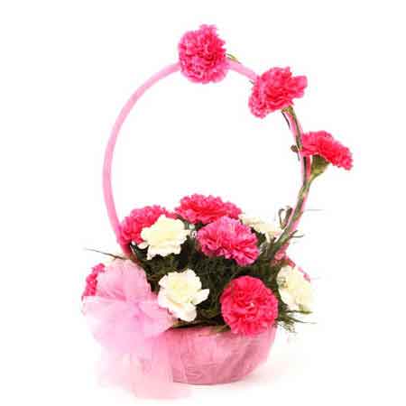 True to its name, this very unique gift looks just awesome. This very gorgeous bouquet is made up of very fresh and beautiful 8 pink carnations and 4 white carnations in a cute handle basket arrangement with net wrapping and net ribbon bow. It really looks fabulous.
